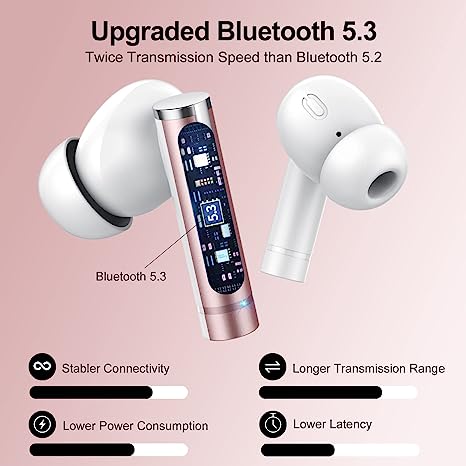 - Bluetooth 5.3 Technology: The wireless headphones adopt bluetooth 5.3 chip, low battery consumption, fast transmission speed, and stable connection range up to 18m.