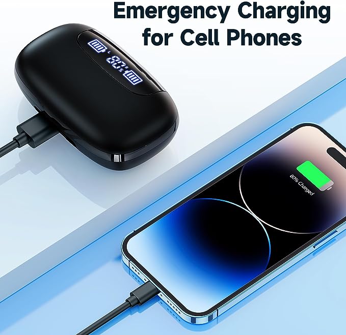 - IPX7 Waterproof and Digital Power Display: These wireless headphones feature an IPX7 waterproof nano-coating on their internal components, ensuring complete protection against sweat and moisture immersion.The top of the charging case is equipped with an LED power display, allowing you to effortlessly check the remaining power of the case and the charging status of both earbuds. Simply place both earbuds back into the charging case and close the lid to initiate charging for both headsets.